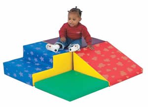The versatility of this Snuggle Corner is great for any household. It fits easily in a corner, or stretches out for straight line fun. The 4 vinyl-covered foam pieces can be used alone or as a set to climb, slide or conquer the 10" high peak! Sized for 6 months through the 2's. 40" squareCF710-101PT SNUGGLE CORNER
